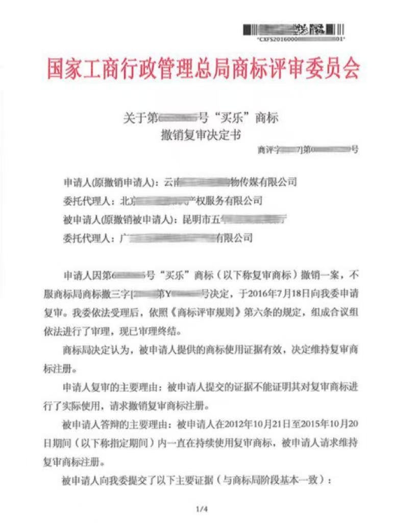 某企业核心品牌“买乐”遭遇他人恶意抢注,致使品牌权属陷入争议。在商标权属复审程序中,权利人除提交基础权利材料外,“买乐.商标”域名的注册与使用证据成为关键胜诉依据。