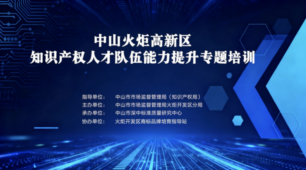 11月5日下午,由中山市市场监督管理局指导、火炬开发区分局主办的“企业知识产权人才能力提升专题培训”在火炬高新开发区成功举行。中山火炬高技术产业开发区系1990年由科技部、广东省人民政府和中山市人民政府共同创办的国家级高新区,区内10亿元以上企业28家,百亿级以上企业2家,2024年,实现地区生产总值573.72亿。本次培训聚焦数字时代下的商标品牌保护与创新发展,吸引了区内高新企业的知识产权负责人、法务、品牌及技术部门核心成员参与。